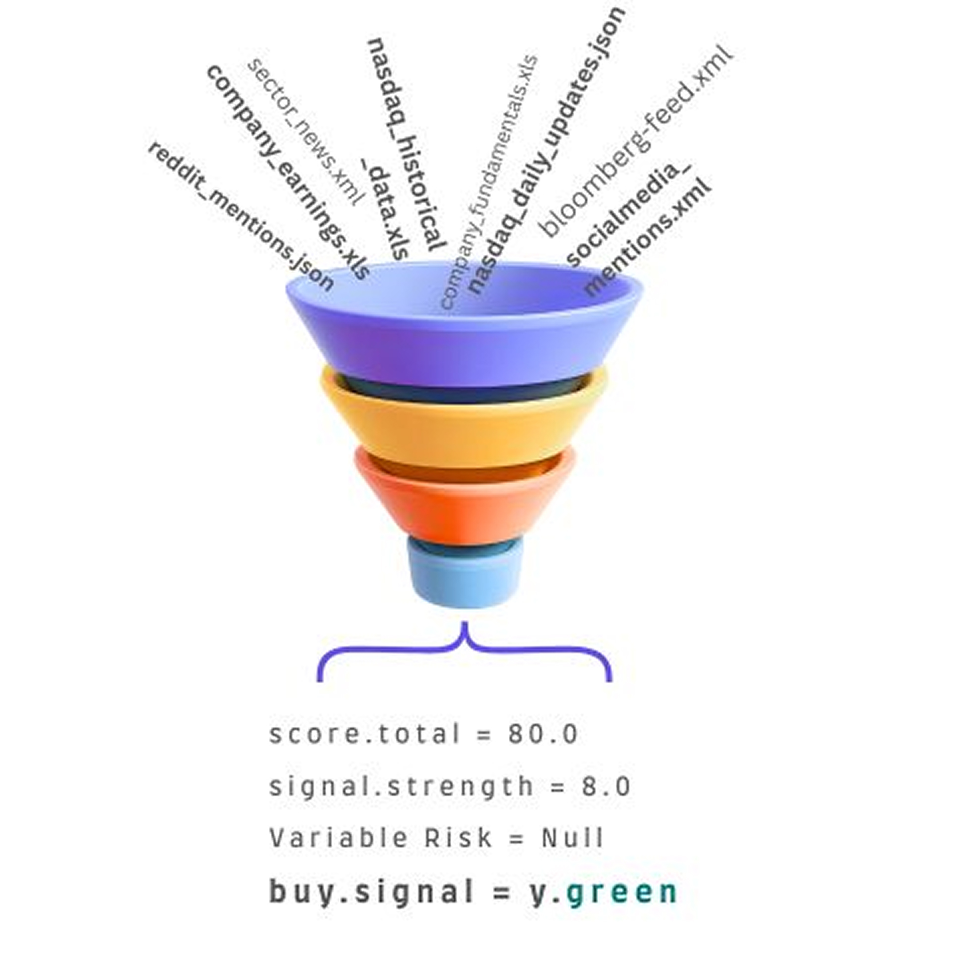 We collect historical and current market data across fundamentals, business strength, and technical indicators. Every metric is tied to its source and timestamp, so inputs are always traceable.